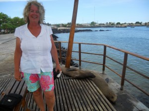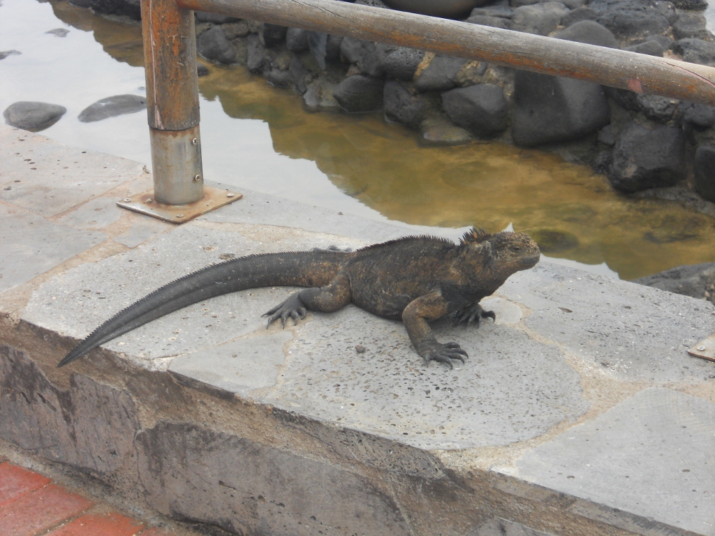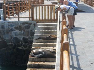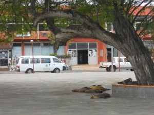 Finally, after about 2 hours of paperwork, instructions etc we were allowed to go ashore. My first impression was one of shock. I expected to see a barely habited island. In fact the population of San Cristobalis 6,000. There are shops, bars, restaurants, travel agencies, dive centres….. However, it was clear from first sight that the island is owned by the wildlife and humans are just about tolerated. We arrived at the dock in the water taxi only to find the steps up to land from the water were covered with sea lions who made no attempt to get out of our way. On land, there were sea lions resting on park benches, under trees, in the children’s playground. Traffic was stopping regularly to let marine iguanas cross the road. The seals also climb aboard the boats at night and sleep in the cockpit. The first night we arrived back on board, we thought this was cute – until we got the smell and found huge poops on the deck. Seas lions are incredibly smelly.
